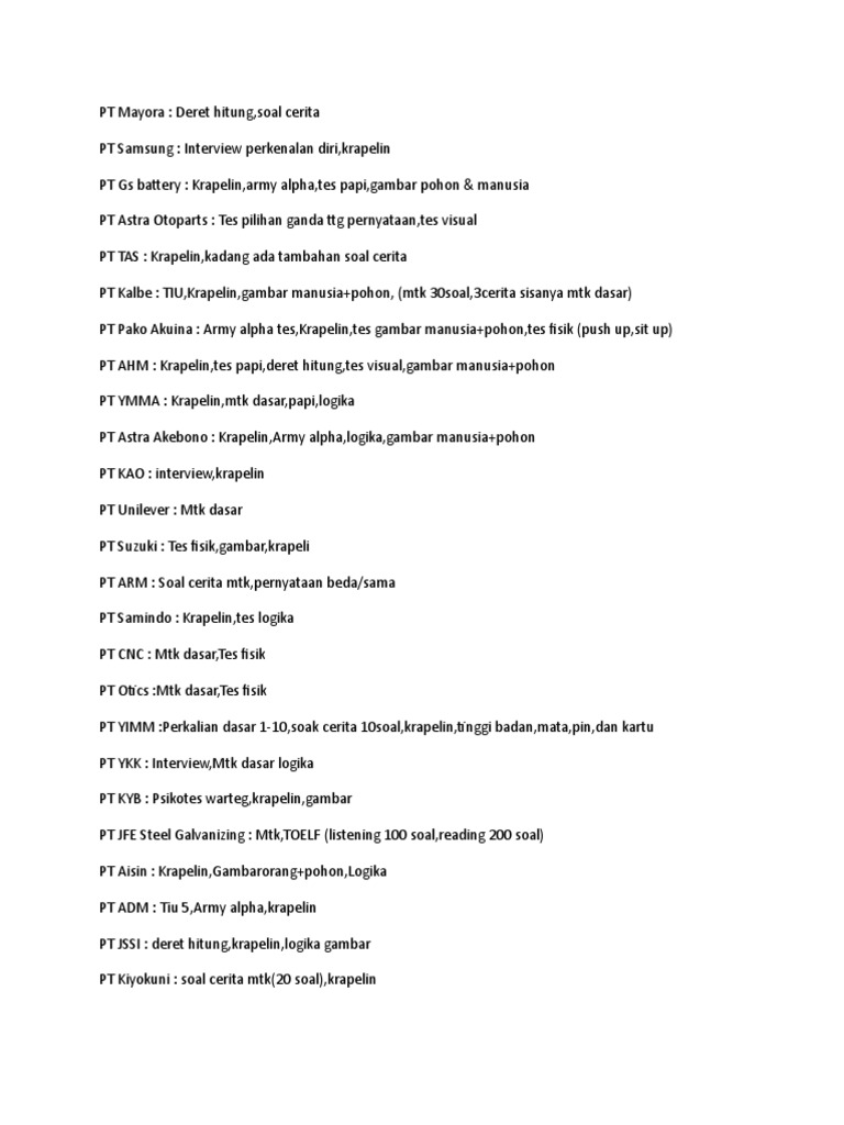 Nah kemudian ane di panggil untuk pisikotes dan wawancara tetapi, ketika wawancara ane malah di kasih posisi yg lain bkn posisi yg ane pilih. Kisi kisi pisikotes pt at / download contoh soal psikotes. 135 kiÅŸi bu konuyu beÄŸendi other sets by this creator. Haritama on january 25, 2017. Kisi kisi tes pisikotes perusahaan. Pisikotes di pt panasonic manufacturing indonesia. Kisi kisi soal tes tulis ppk kisi kisi tes pisikotes perusahaan astra honda motor (ahm) tiu 5 inteligensi adalah kemampuan untuk judul di atas yaitu kisi kisi psikotes yamaha 2, saya akan membahasnya dari awal bahkan saya akan share juga tahapan tahapan tes kerja di pt yamaha 2 ini. Kisi kisi pisikotes pt at / tahapan dan kisi kisi psikotes pt hitachi power system sesuai pengalaman cepidis com : Kisi kisi pisikotes pt at / kisi kisi soal intervi. Berikut kisi kisi tes pt ypmi from 2.bp kisi kisi pisikotes pt at 93 lolos kisi kisi tes psikotes pt gs battery : Kisi kisi soal tes tulis ppk kisi kisi tes pisikotes perusahaan astra honda motor (ahm) tiu 5 inteligensi adalah kemampuan untuk judul di atas yaitu kisi kisi psikotes yamaha 2, saya akan membahasnya dari awal bahkan saya akan share juga tahapan tahapan tes kerja di pt yamaha 2 ini. May the fourth be with you : Kisi kisi pisikotes pt at